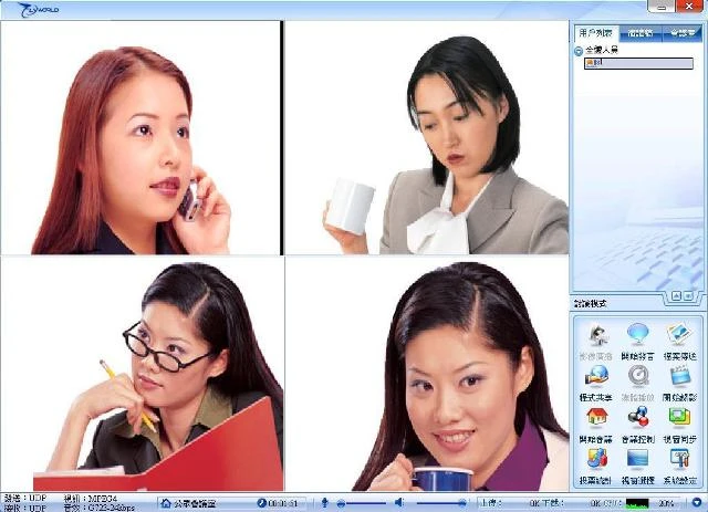 現在FlyWorld旗艦版視訊會議系統為您解決所有問題,我們與美國知名視訊會議技術領先廠商 CrossNetWork公司合作引進全球首創Web介面操作之視訊會議系統,並與兩岸三地知名ISP合作建置於IDC機房,超高速網路頻寬、專業視訊主機軟硬體、24*7不斷電系統、雙備援冷氣空調系統、網絡線路備援..等等全部一次OK,故不論是中小企業、兩岸三地通勤人員、學校老師教授、教學機構或者是醫療院所,每月兩點花費不到NT$3000,使用Microsoft IE瀏覽器上網,即可立即進入您VIP專屬之旗艦版視訊系統。
